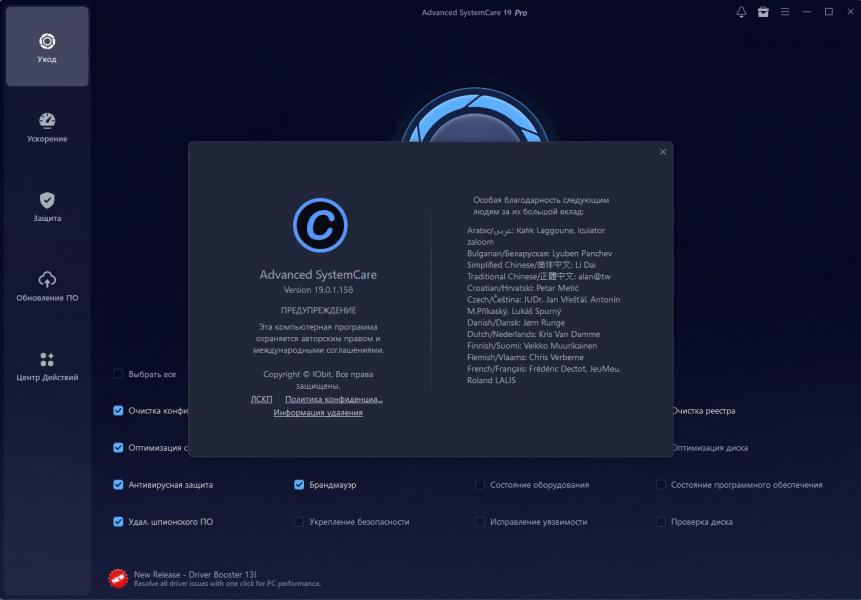 В ветке Advanced SystemCare 19 актуальна сборка V 19.2.0, релиз датирован 30 января 2026. В примечаниях к обновлению упоминаются расширение базы Anti-Spyware, обновления для Software Updater (в том числе актуальные версии Chrome/Edge/Firefox), расширение базы Surfing Protection и улучшения приватности.