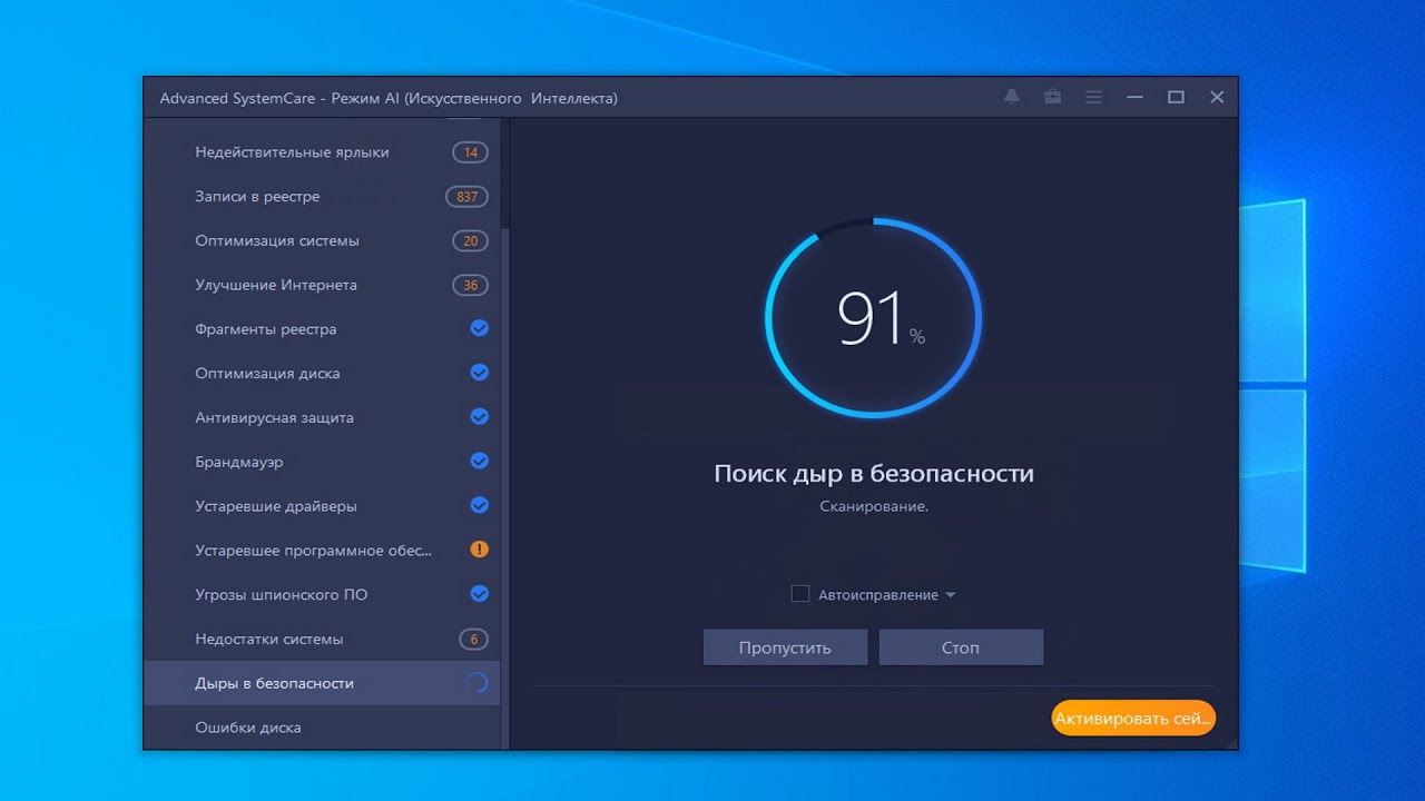 Scan — запуск сканирования Advanced SystemCare