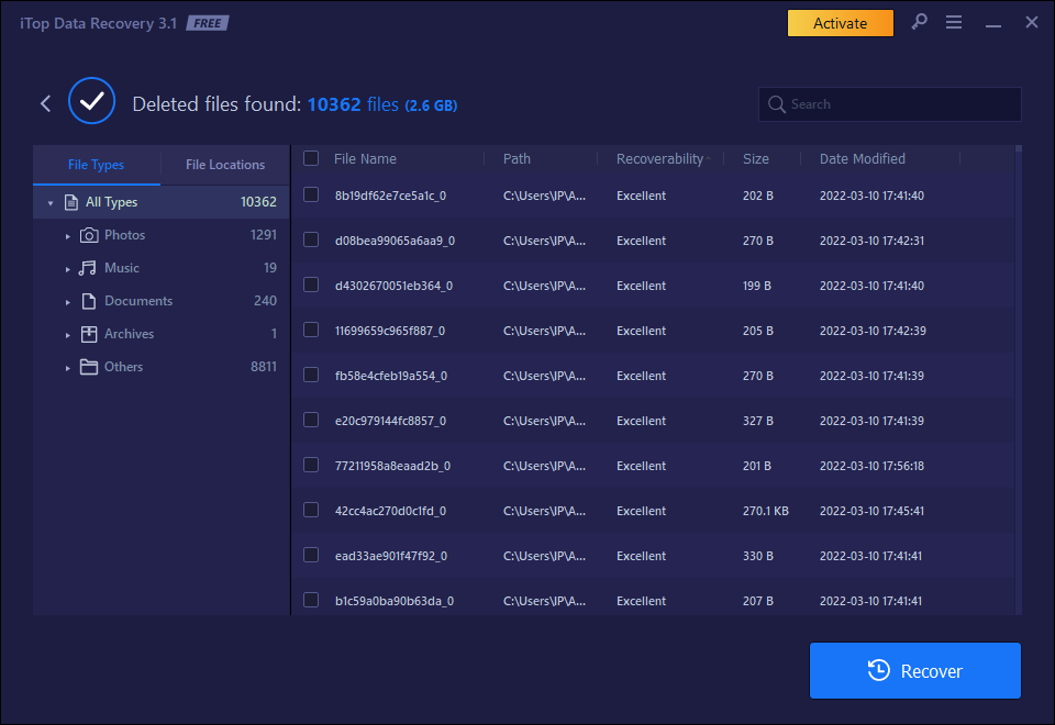 Если нужно вернуть почтовые данные, iTop Data Recovery поднимает типы, встречающиеся в почтовых сценариях, включая *.tbb, *.eml, *.pst.
