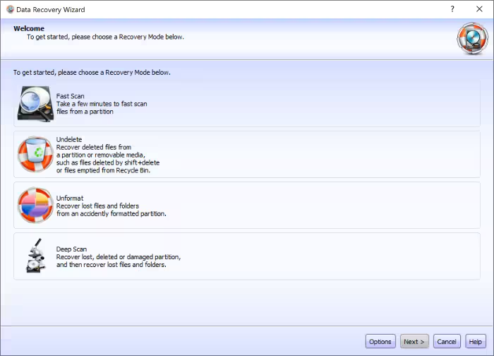 Типовые режимы восстановления внутри Data Recovery