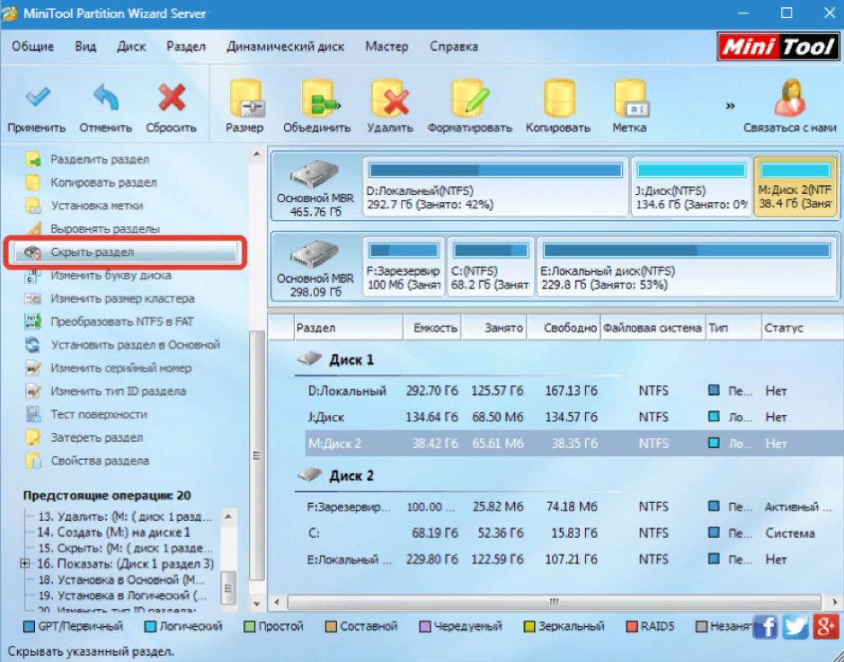 Интерфейс MiniTool Partition Wizard: что где находится