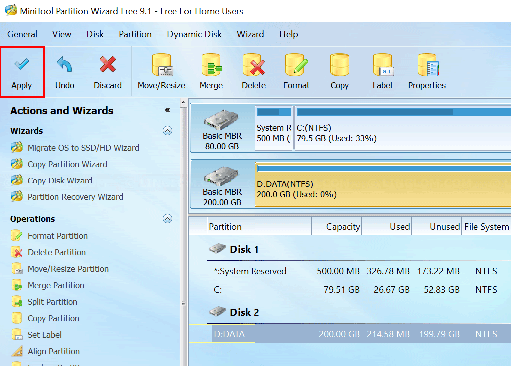 MiniTool Partition Wizard почти всегда работает по модели предварительного просмотра: