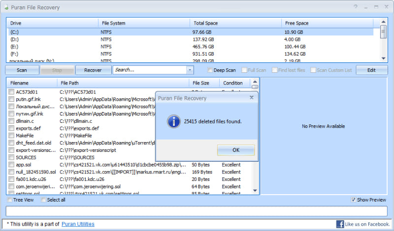 File Recovery: выбираете режим Quick Scan / Deep Scan / Full Scan в зависимости от ситуации.