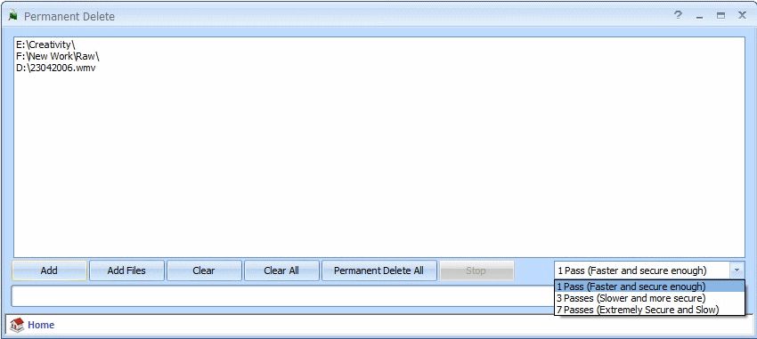 По логике модуля поддерживаются режимы многопроходного удаления (1/3/7 pass). 1 pass отмечен как быстрый и достаточный для большинства сценариев, 3 pass и 7 pass — более медленные и более «жёсткие» по невозможности восстановления.