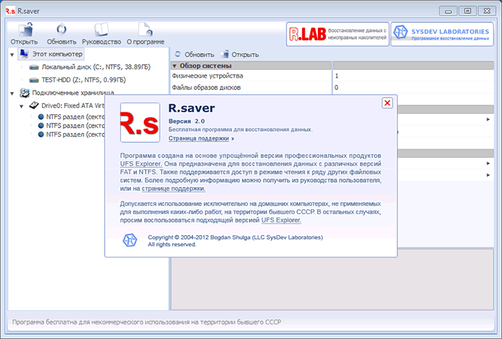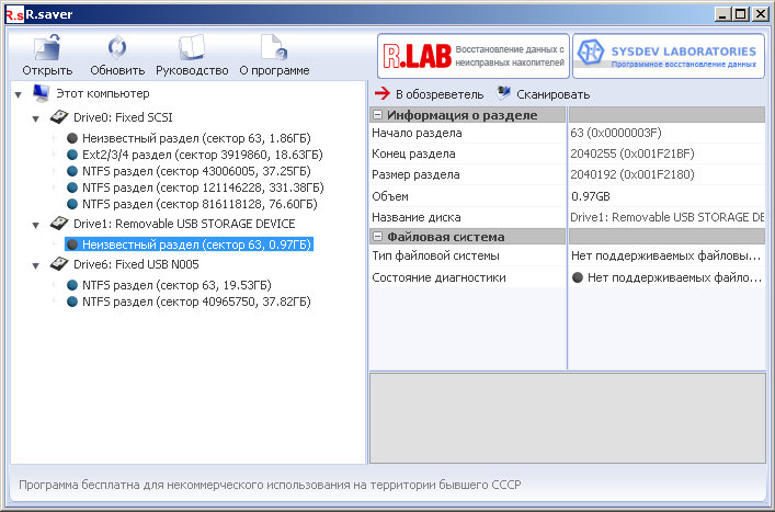 R.saver восстанавливает удалённые файлы, реконструирует повреждённые файловые системы, поднимает данные после форматирования и выполняет восстановление по сигнатурам.