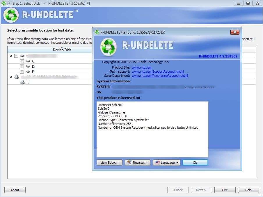 Установку R-Undelete выполняют на системный диск, который не пострадал, либо на отдельный накопитель.