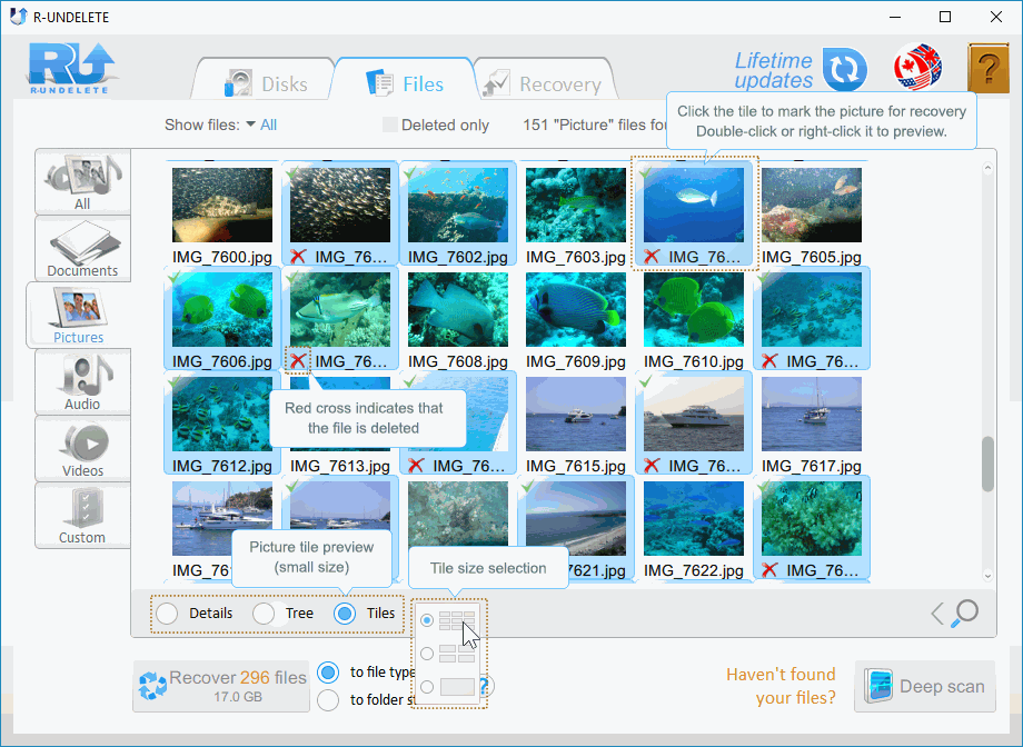 После Deep Scan открыть вкладки Pictures/Documents и оценить выдачу по типам.