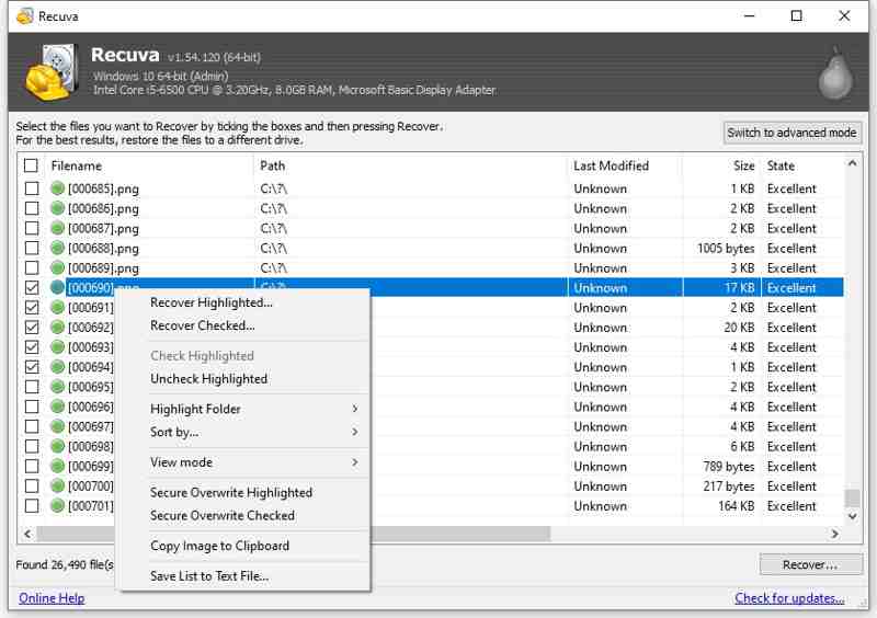 Recuva — утилита для восстановления данных в Windows, ориентированная на быстрый поиск удалённых файлов и понятный процесс возврата: от выбора типа данных до сохранения восстановленных копий в отдельную папку. Программа работает с файлами, удалёнными из обычных папок, из корзины, а также с данными на съёмных носителях (USB-накопители, карты памяти, внешние диски). В интерфейсе предусмотрены мастер Recuva Wizard и расширенный режим Advanced Mode, где управление становится точнее и быстрее при повторяющихся задачах.