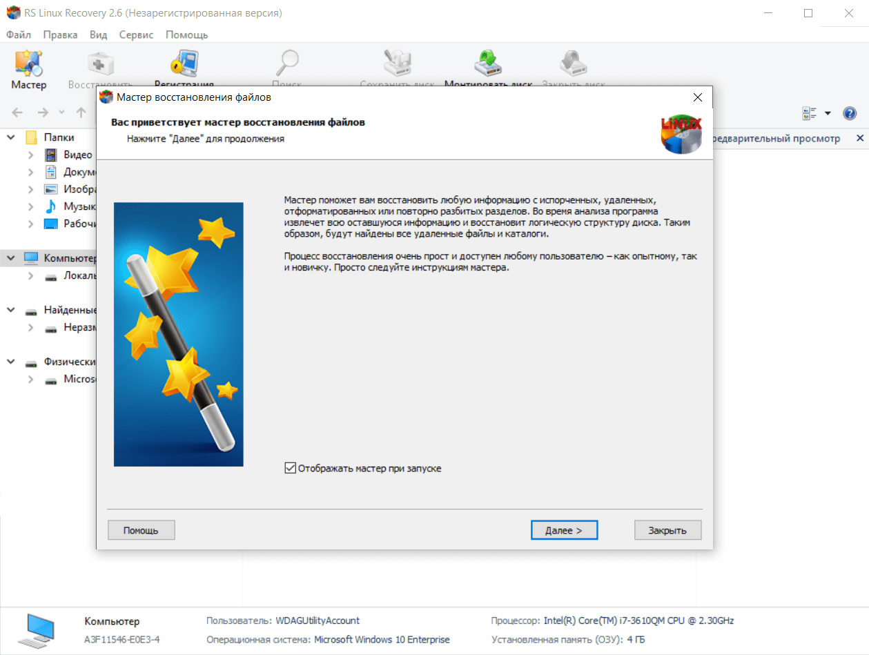 Наличие мастера Wizard, который помогает проходить восстановление последовательно и без пропусков.