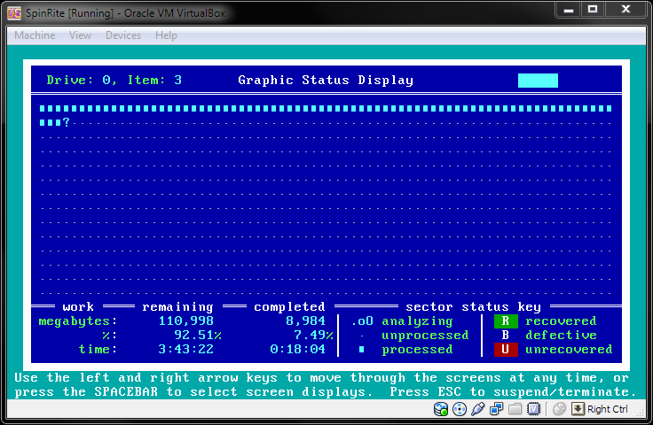 При сильных зависаниях — корректно прерывать через ESC → SpinRite Interruption Options, фиксировать точку и продолжать «частями».