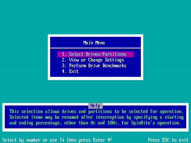SpinRite построен вокруг простого управления: