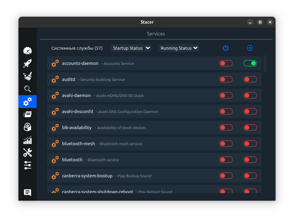 apt install stacerна поддерживаемых ветках репозитория дистрибутива); -