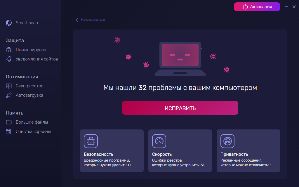 Smart scan (главный режим)