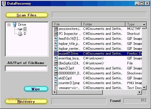 TOKIWA DataRecovery — практичная утилита для восстановления удалённых файлов в Windows, когда важны скорость, простота и портативность. В ней хорошо реализован базовый рабочий процесс: выбрать том в Drive, указать строку поиска (All or part of the file name), нажать Scan Files, отсортировать список по нужной колонке, выделить элементы и восстановить через Recovery в отдельную папку. Для задач, где нужно не только восстановление данных, но и уничтожение удалённых файлов, присутствует Wipe с перезаписью нулями.