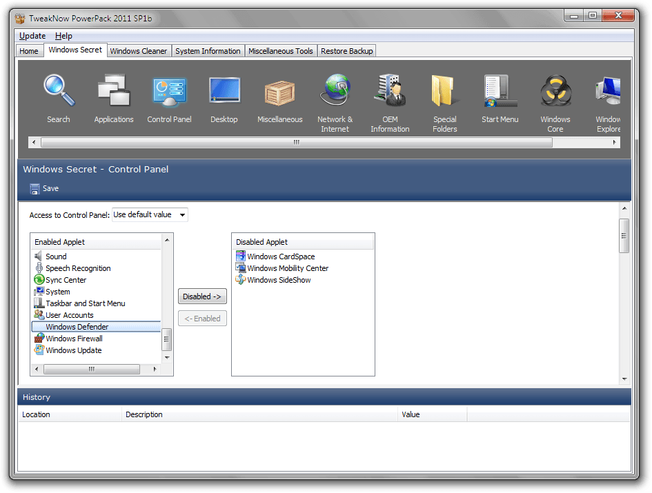 Сильный модуль Windows Secret с понятной категоризацией (Applications, Control Panel, Windows Explorer, Windows Logon и т. д.).