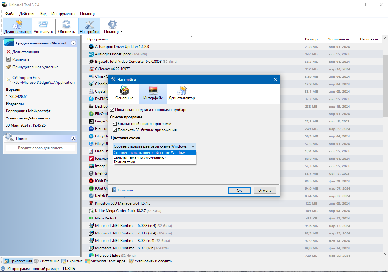 Выборочность: перед удалением вы видите финальный список, можете снять галочки с сомнительных пунктов и удалить только то, что уверенно относится к программе.