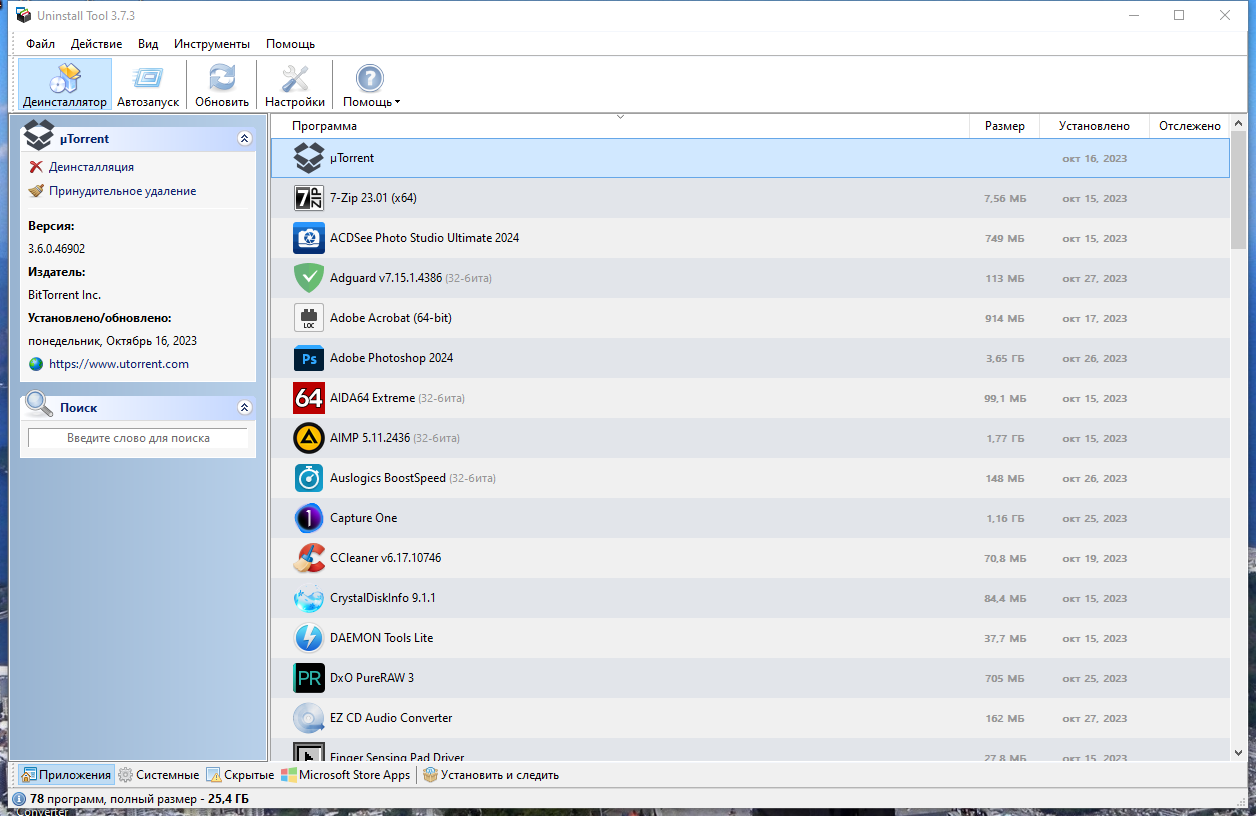Uninstall Tool — это утилита для удаления программ в Windows с акцентом на скорость, удобный список установленного ПО и аккуратную зачистку остаточных файлов и ключей реестра после удаления. Программа закрывает типичную проблему стандартного удаления Windows: деинсталлятор приложения отрабатывает «как умеет», но папки в Program Files, данные в AppData, ярлыки, службы, расширения оболочки и ветки реестра часто остаются.