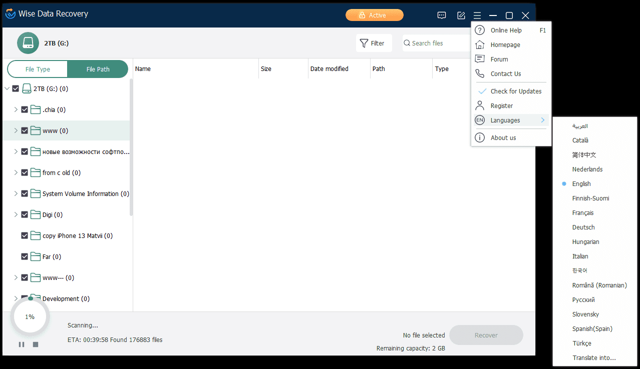 Бесплатная редакция ограничивает объём восстанавливаемых данных лимитом 2 GB, поэтому большие фото/видео-архивы быстро упираются в ограничение.
