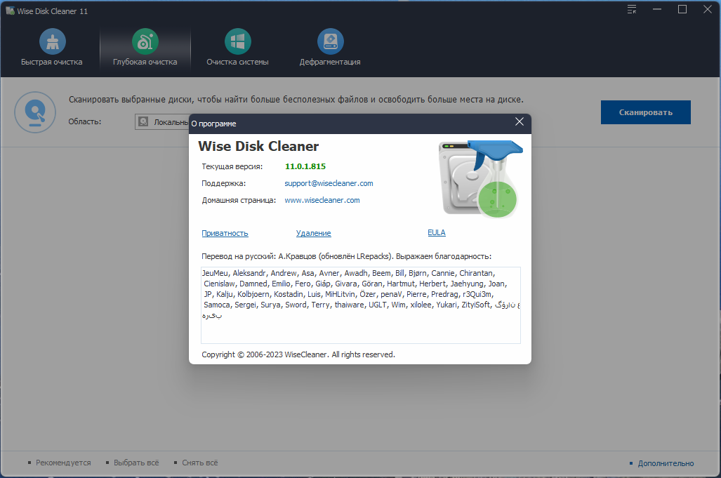 Wise Disk Cleaner поддерживает десятки языков (в руководстве перечисляется набор и отдельно упоминается, что список включает русский).