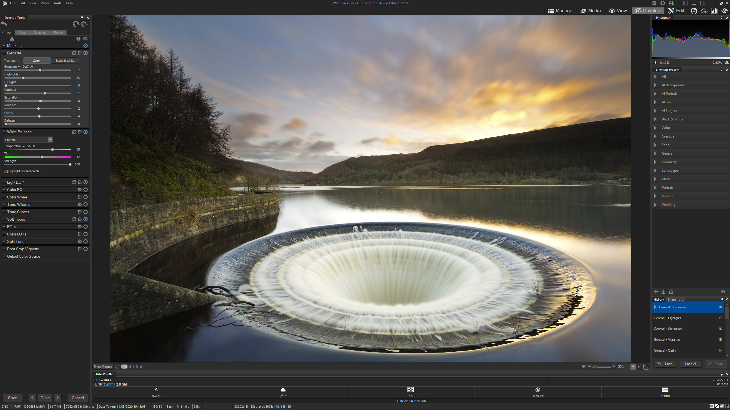 Сильные инструменты Develop Mode: Light EQ™, Color EQ, Color Wheel, Tone Wheels, Tone Curves, пресеты и локальные правки.