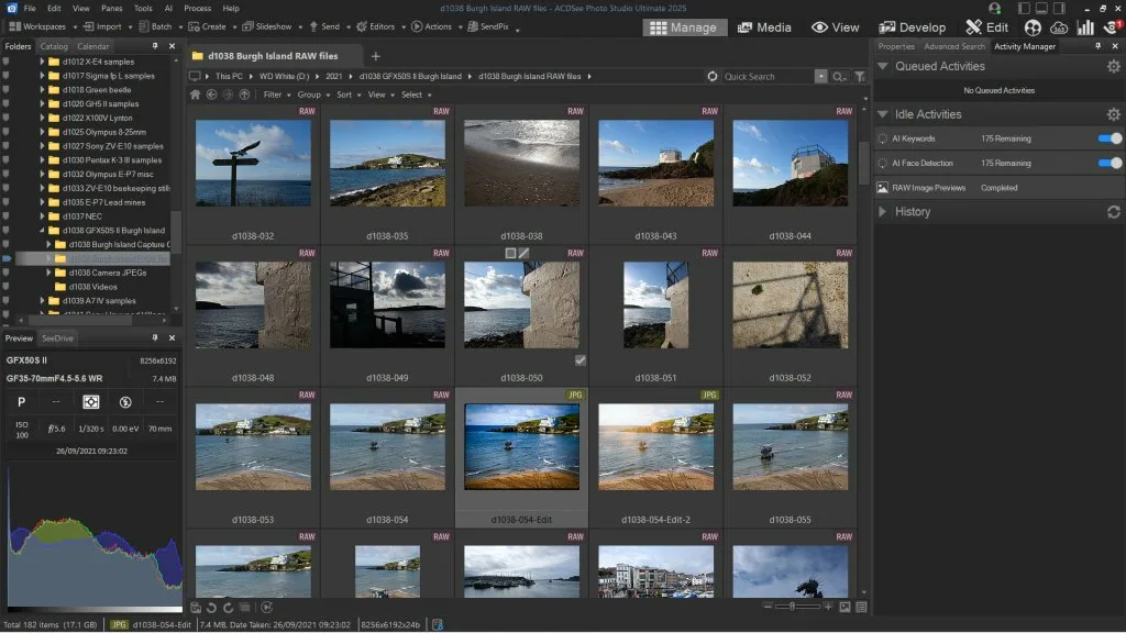 Manage Mode — центральное место для просмотра папок, каталогизации и отбора.