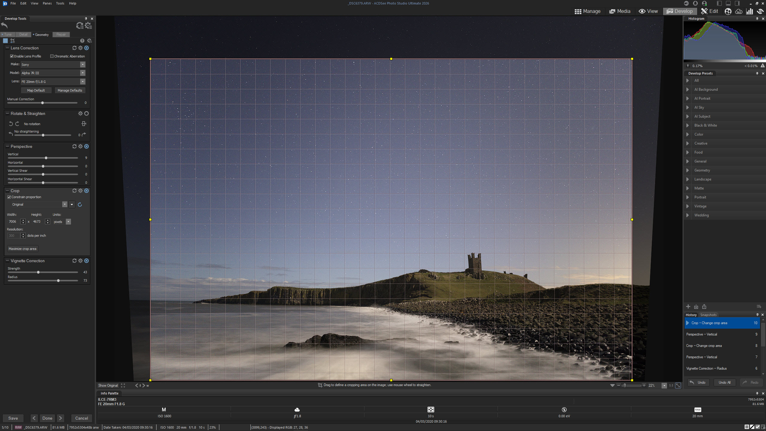 | Неразрушающая RAW-проявка | Develop Mode + Develop Presets + маски | Глубокий Develop и история изменений |