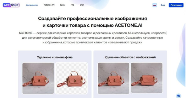 ACETONE.AI лучше всего раскрывается, когда вам нужно много одинаковых операций: удалить фон на серии товаров, привести каталог к единому виду, убрать лишнее, нанести логотип и собрать карточки товара под маркетплейсы в одном кабинете.