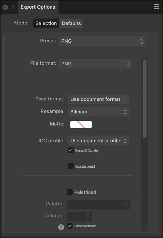 В Export Persona масштаб 1x/2x/3x привязан к DPI документа. Поэтому если вы вдруг видите “неожиданные” размеры экспорта, проверьте: