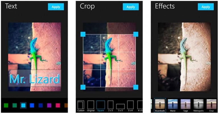сильный набор “повседневных” инструментов: Enhance, Adjust, Crop, Effects, Focus, Vignette, Splash;