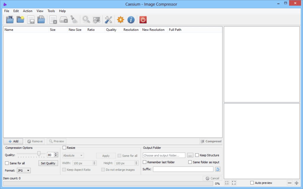 Caesium Image Compressor — настольная программа для пакетного сжатия и уменьшения размера изображений с контролем качества и сравнением «до/после». Её типичный сценарий — быстро подготовить десятки или тысячи файлов под веб-публикацию, отправку в мессенджеры, загрузку в CMS/маркетплейсы или архивирование, не превращая процесс в ручную рутину. В одной рабочей области Caesium совмещает: список файлов, предпросмотр оригинала и результата, а также вкладки настроек Compression, Resize и Output, где вы задаёте правила обработки.