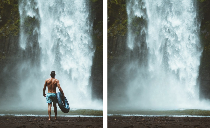 Пример «до/после» с удалением человека: