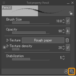 В Sub Tool Detail можно включать/выключать видимость конкретных параметров в Tool Property (чекбоксы и «глаз» у настроек). Это позволяет настроить Tool Property так, чтобы там были только нужные ползунки.