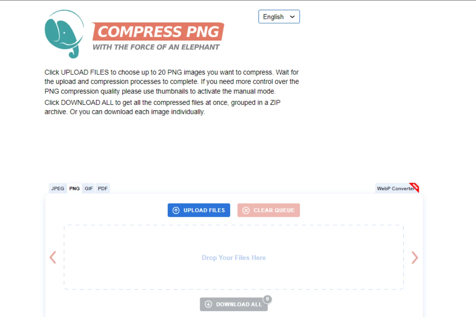 Запуск делается кнопкой COMPRESS под зоной Drop Your Files Here, рядом с кнопкой SAVE ALL.
