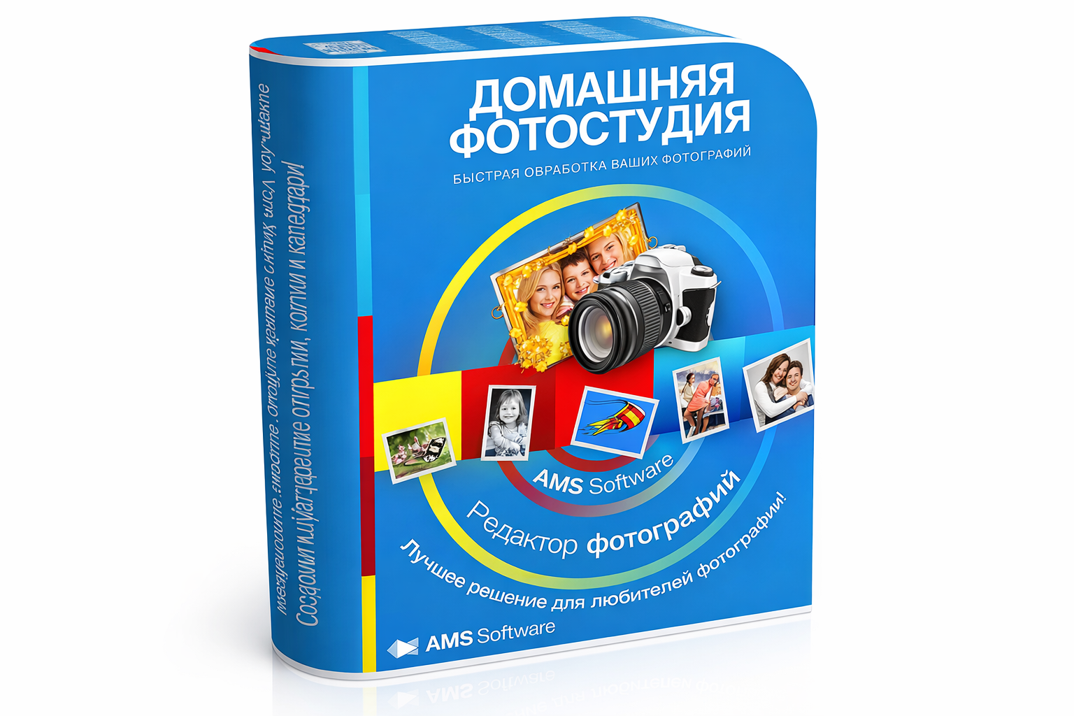 Домашняя Фотостудия — это не просто программа для обработки фотографий на Windows, а универсальный редактор фото на русском языке, который закрывает сразу несколько бытовых и полупрофессиональных задач: от быстрой коррекции кадра и портретной ретуши до фотомонтажа, замены фона, добавления текста, создания открыток, календарей, коллажей и печати снимков в нужном размере.