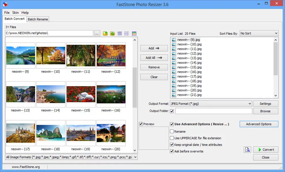 FastStone Photo Resizer рассчитан на большие пачки — и это ощущается: