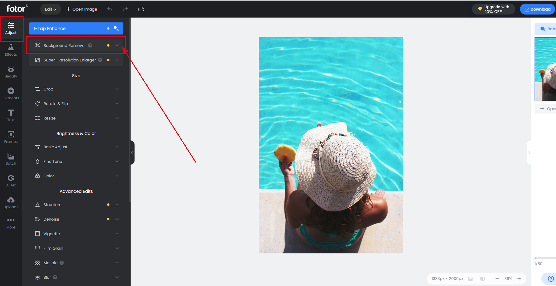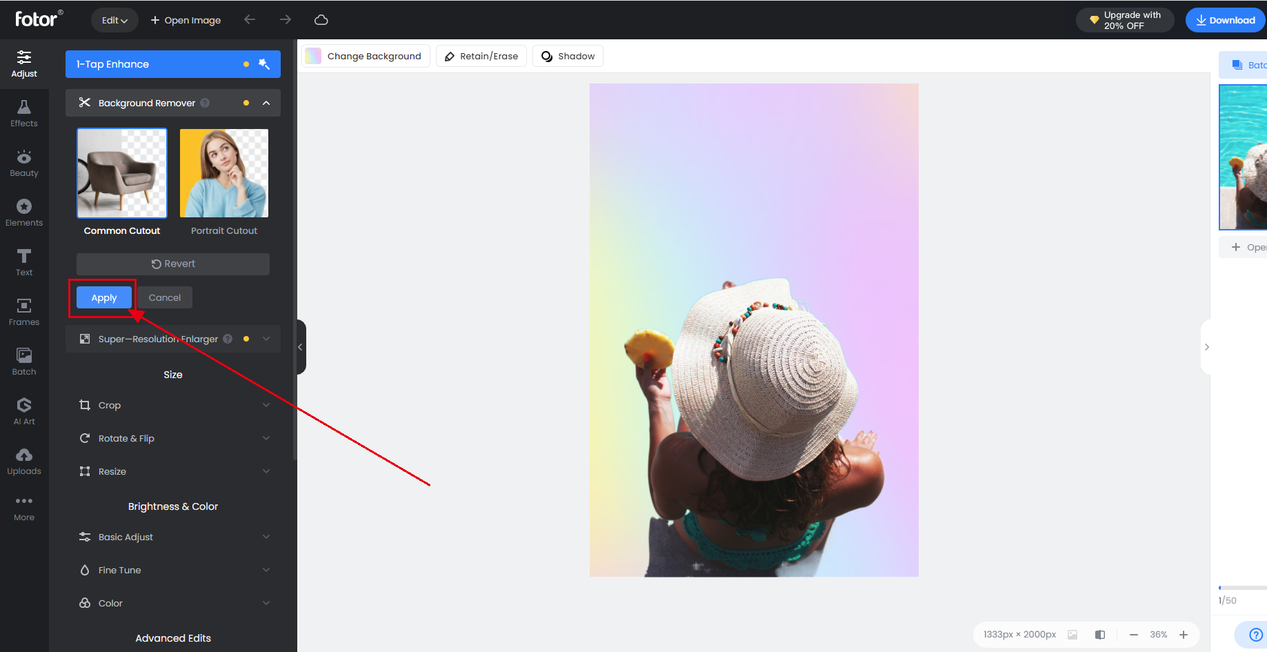 Adjust → Background Remover → дождитесь автоматического вырезания.