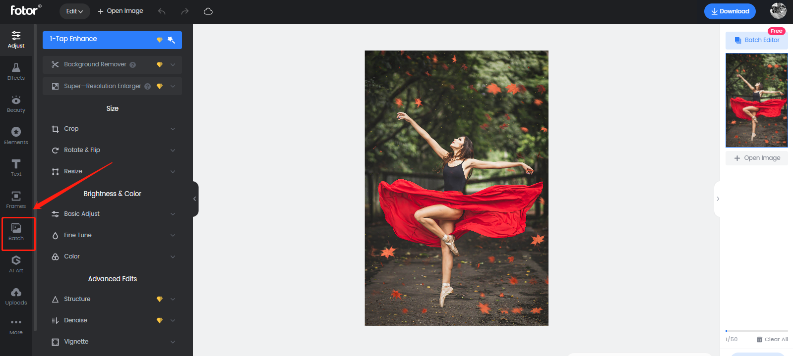 Отдельно стоит помнить правило Fotor: если в работе применены платные эффекты/ассеты, скачивание может быть заблокировано до перехода на Pro/Pro+. Если использованы только бесплатные инструменты и ресурсы — результат скачивается обычной кнопкой Download.