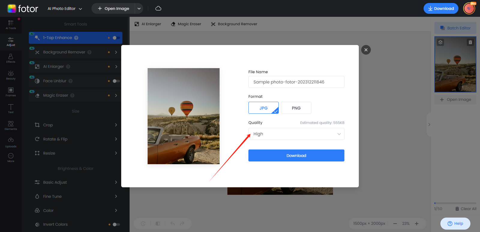 Download → JPG, Quality: High.