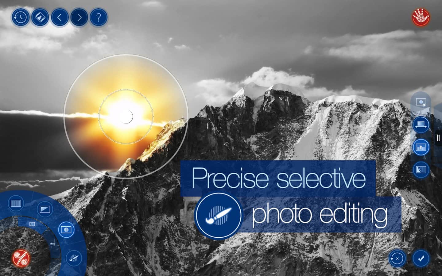 Handy Photo узнаваем по двум вещам: иконка руки (главная кнопка) и радиальное меню инструментов.