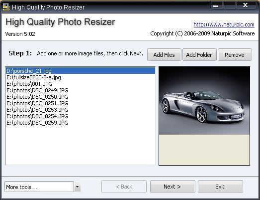 Ниже — характерный вид стартового шага, где добавляются файлы и папки, справа показывается превью выбранного изображения.