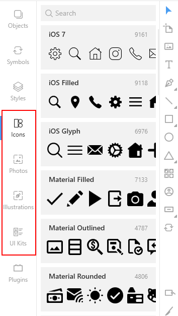 В левой панели перейдите в раздел Libraries и выберите вкладку Icons (или Photos/Illustrations).