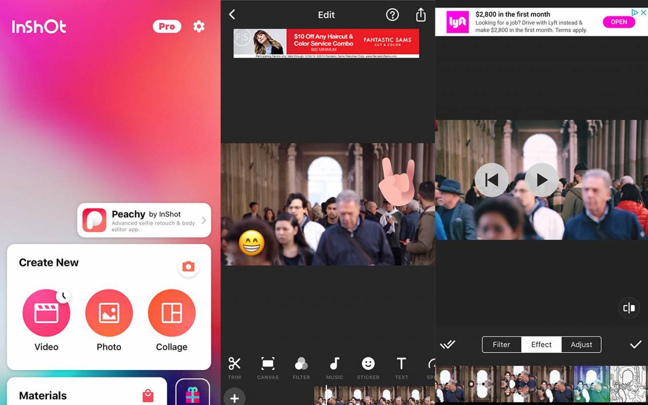 InShot работает по модели freemium: базовый монтаж доступен сразу после установки, а часть эффектов, переходов, стикеров, инструментов AI и удобств (вроде отключения рекламы и водяного знака) открывается в InShot Pro.