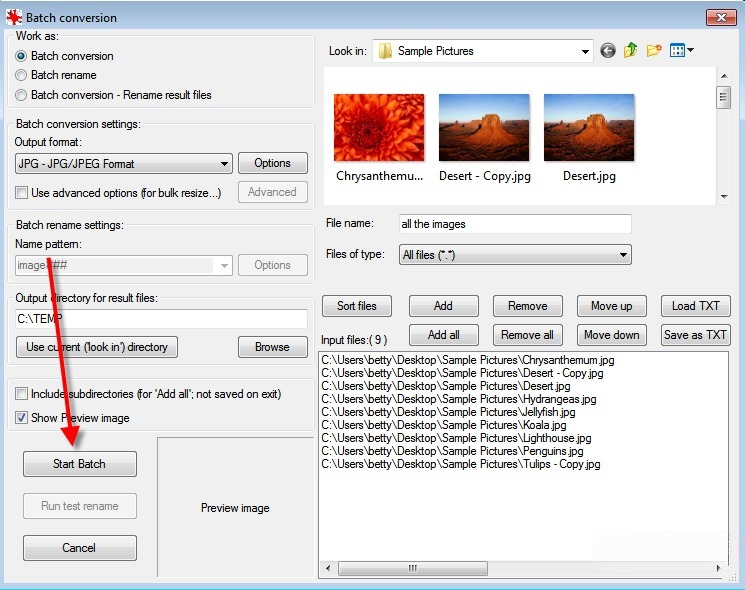 Сильная пакетная обработка: Batch Conversion/Rename с Use advanced options.
