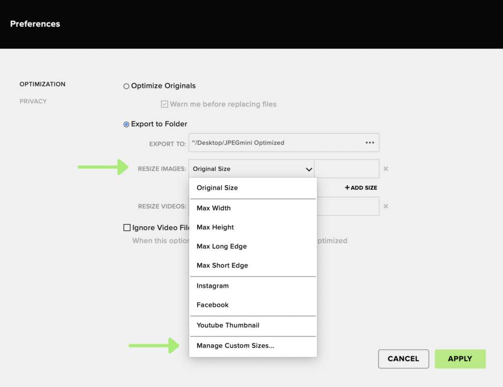 Resize в JPEGmini Pro: уменьшение размеров изображения при экспорте