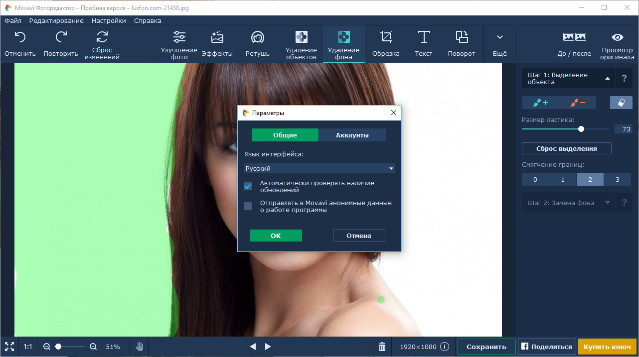 У «Мовавика Фото» есть пробный режим: программу можно поставить и протестировать на своих фотографиях. Важно учитывать ограничения триала: сохранение возможно до 10 изображений, и сохранённые файлы будут с водяным знаком; создание скриншотов в триал-режиме отключено.