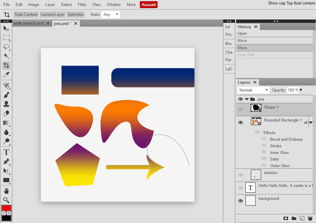 Текст, фигуры и векторные элементы в Photopea