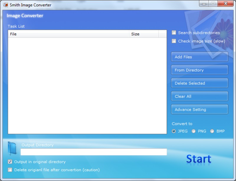 Smith Image Converter предлагает два базовых способа наполнить Task List.
