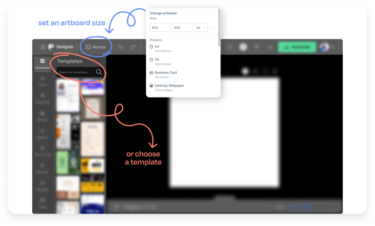 Resize — изменение формата/размера артборда;