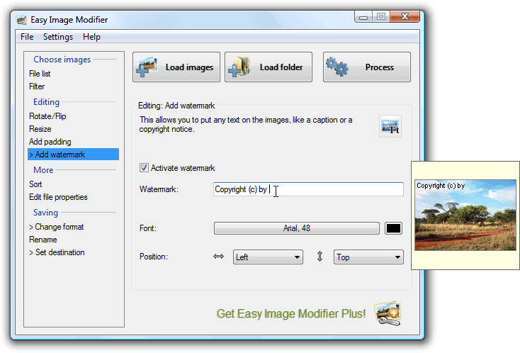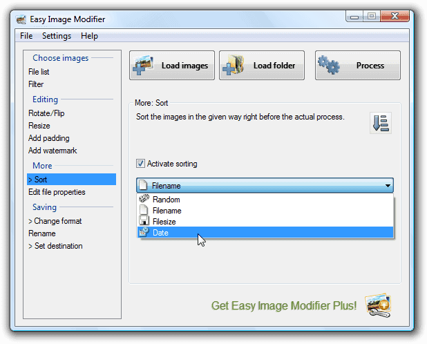 Easy Image Modifier Plus рассчитан на случаи, когда базового набора недостаточно и нужны расширенные сценарии: более гибкое переименование по дате, дополнительные форматы сохранения (включая PDF и JPEG 2000), больше опций watermark и пресеты для быстрого переключения задач. Если ваши задачи — пакетный resize/convert/rename и текстовый watermark, базовая версия закрывает их без усложнения. Если нужно больше форматов и автоматизации по данным изображения — Plus даёт ощутимый прирост.