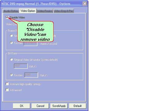 Во вкладке Video Option сосредоточен контроль над видеочастью. Здесь находится флажок Disable Video, выбор Video Codec, настройка Frame Rate, а также работа с Bit Rate. Этот раздел нужен, когда пользователь хочет либо полностью превратить исходный файл в аудиорезультат, либо вручную вмешаться в параметры видео. Это особенно полезно в сценариях, где важен баланс между размером файла, качеством и совместимостью с устройством или диском.